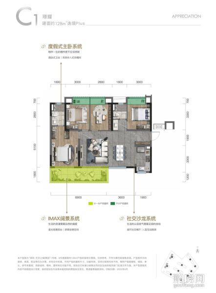 保利天空之城璟園C1戶型(4室2廳,128平,南北)