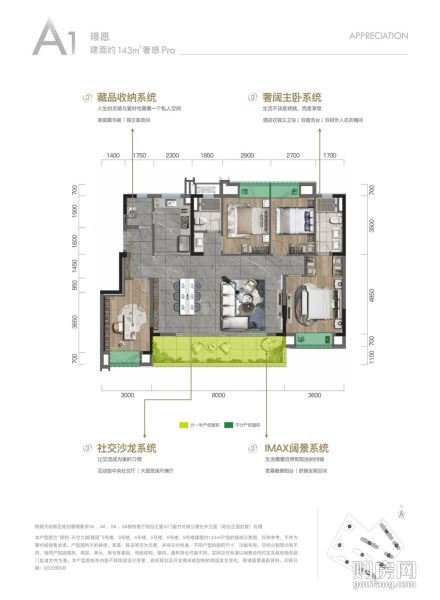 保利天空之城璟園A1戶型(4室2廳,143平,南北)
