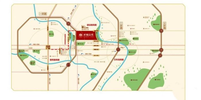 太陽公元(成都)位于東一環建設路,電子科大旁。附近雙地鐵交匯,分別是地鐵6號線、地鐵17號線,步行10分鐘還能到達二環BRT,有40多條公交路線,無論是自駕出行還是公共交通出行都非常方便。商業配套十分成熟完善,不僅有建設路商圈,還有春熙路商圈、萬年場商圈、猛追灣商圈,一到節假日就有大量外地游客前來“朝圣”的火爆商圈,選擇這里就是住在“耶路撒冷”。該項目本身還自帶6700㎡地下超市、大型果蔬超市、大型電影院、空中花園等。教育配套有電子科大、龍江路小學等,享優質教育資源。公園有沙河公園、成華公園、新華公園、東郊記憶音樂公園等六大公園環抱,既有都市的繁華生活,又有優越的生態自然環境。醫療資源有市二醫院、市六醫院、416醫院、川大華西醫院 、省人民醫院等,保障家人健康。