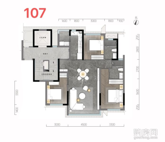 天湖翠林-建面約107㎡戶型(3室2廳,107平,南北)