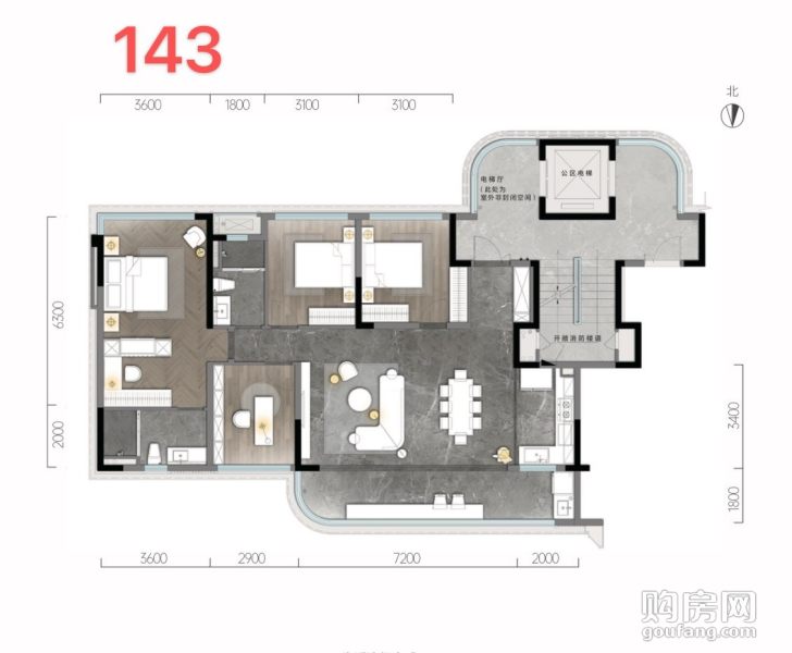 天湖翠林-建面約107㎡戶型(4室2廳,143平,南北)
