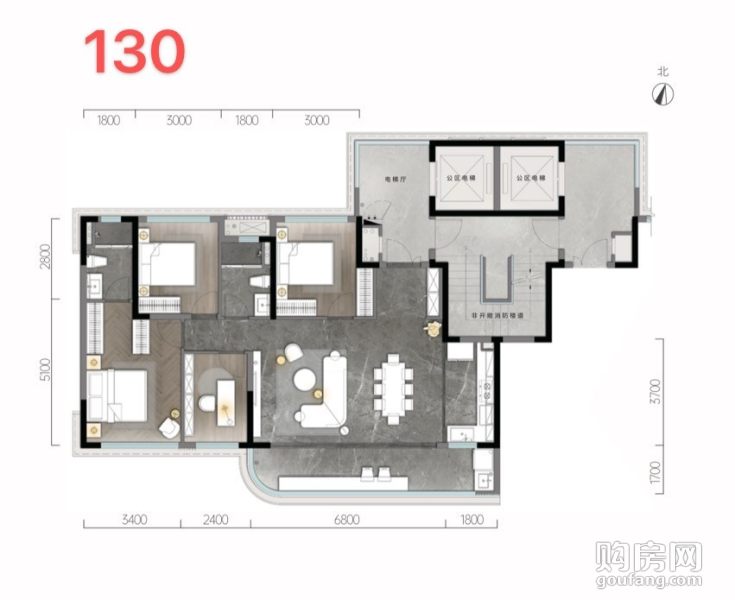 天湖翠林-建面約130㎡戶型(4室2廳,130平,南北)